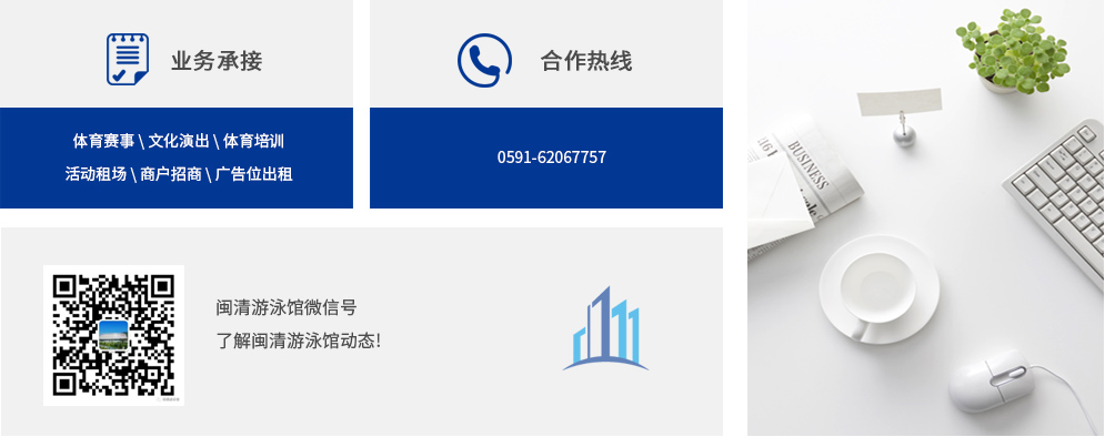 闽清游泳馆占地面积17175平方米,建筑面积19646平方米,于2019年正式对外开放。场馆呈椭圆型,设计理念总体布局吸收闽清县梅城文化,与体育馆、科技馆组合成整体统筹规划,取意为“飘落在三山四水间的梅花瓣”,游泳馆为花瓣中的一朵。
